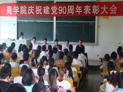 7月1日下午,我院隆重召开庆祝建党90周年暨表彰大会,庆祝党的生日,回顾党的光荣历史,缅怀党的丰功伟绩,重温入党誓词,表彰先进党组织和优秀党员、优秀党务工作者。大会在2号教学楼202教室举行,党委书记段福兴,党委副书记MBA中心主任高厚礼、党委副书记刘伟,副院长崔会保、王宗刚出席大会,受表彰人员、教师和学生代表参加大会。会议由刘伟主持。