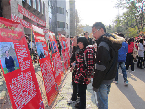 为保证评选的公平、公正、公开,更好的选出学生心中最喜爱的老师,校学生会成员提前将参选的二十位老师的宣传展板整齐地摆放在餐厅门前,帮助广大同学及时了解各老师的事迹以便选出自己心中最为优异的人选。