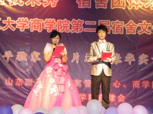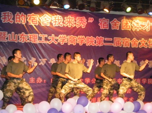 歌舞青春,展现青年风采。不懈奋斗,奏响胜利凯歌。6月3日晚,由我院团委、公寓管理中心主办,自律委员会承办的宿舍才艺展示大赛暨第二届宿舍文化节闭幕式在东校区大学生活动中心顺利举行。此次大赛的评委有学生处副处长、公寓管理中心主任卢延峰,院党委副书记刘伟,院学生科科长郝鹏,东校区公寓管理中心主任董晓鸣,辅导员高存福,楼管阿姨代表,第一届学生会副主席张毅,第一届学生会副主席张鹏超,院艺术团团长祁宇迪和 川摄影店长杨宁女士 以及经理孙川先生。