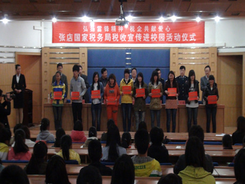 会上,李平院长宣读了本次受资助的学生名单。与会领导为侯春华等10位学生颁发了助学金。受资助的学生表示,他们将心怀感恩、努力学习、不断拼搏,以优异成绩回报社会。袁博、王亮方分别代表张店国税局、淄博商厦有限公司讲话,表达了对我校大学生成长成才的关心,并表示,他们将继续坚持弘扬雷锋精神,立足岗位实际,投身公益事业。