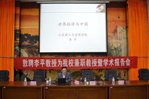 4月15日,我院院长李平教授应邀为泰山学院商学院师生作了题为“世界经济与中国”的报告。报告紧扣后金融危机以来宏观经济领域的重点、热点和难点,结合世界经济发展趋势,从中国的经济增长、物价水平、对外开放、金融市场、人民币国际化等视角,对后金融危机时代的宏观经济形势做了“全景式”剖析。并就学生成功成才和人生规划等问题与现场学生进行了交流。商学院260余名师生听取了报告。