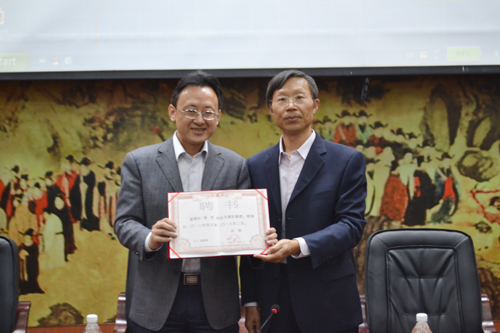 报告会开始前,李平教授受聘为泰山学院兼职教授,泰山学院副院长王雷亭颁发了聘书。