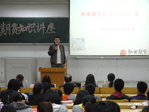 2013年5月9日晚,商学院期货知识讲座在3号教学楼310教室举行。本次讲座邀请到了江苏弘业期货有限公司团队经理马泽栋、总经理助理项飞、济南网融信息科技有限公司总经理李颖、山东理工大学商学院金融系主任余万林等,我院金融学专业的学生参加了此次讲座。