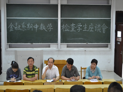 5月16日下午,市场营销专业在三号教学楼308教室举行期中教学检查学生座谈会,市销专业系主任朱振中、副主任杜军燕、辅导员侯倩及10、11、12级各班代表参加了此次交流会。会上,朱振中就此次交流会的背景及主要目的作出说明,此次调研会以双向交流为主,交流中,同学们就学习目标、就业实习等问题提出看法,积极反应在学习生活中遇到的问题。朱振中对同学们的问题作出解答。最后,朱振中劝诫同学们应利用课余时间积极寻找走向社会的切入点,加强社会实践,培养自己的全方位能力,面对未来才能更好的把握机会。