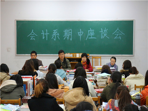 会计学专业于3号教学楼305教室举行了期中教学检查学生座谈会。商学院党委副书记刘伟、团委书记郝鹏及相关教师代表、部分学生代表参加了此次会议。会议伊始,学生代表针对就业前景、考研流程、考证以及教学等方面提出问题,各位老师认真倾听并耐心解答,并且与学生进行了学习上的深入交流,就学生没有配套练习题的问题,田璇老师表示“要多与任课老师沟通,同时要培养自己的兴趣爱好。”就同学们提问的考研问题,郝鹏希望同学们尽早明确自己的学习目标,制定计划并认真学习专业基础知识,根据自身情况选择毕业方向,并表示老师会全力帮助解决学生学习生活问题。最后,刘伟分析了当前的考研与就业形势,希望同学们能够全方面综合发展,不要只拘泥于学习,更要关注时事发展和自身综合素质的提高。 座谈会现场气氛活跃,大家对近半学期内遇到的问题做出充分说明,老师也对此进行了耐心讲解,本次座谈会为同学们接下来的学习进步奠定了基础。