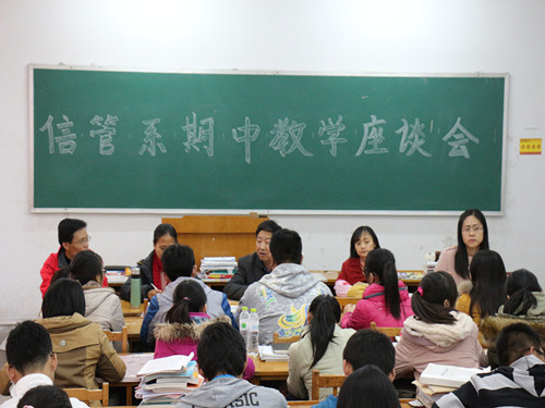信息管理与信息系统专业于3号教学楼204教室举行了期中教学检查学生座谈会。商学院党委书记段福兴、辅导员毕奎奎及部分教学科教师代表、学生代表参加了此次会议。座谈会以学生提问、教师解答为主要形式开展,就教师教学方法、教学模式、课程设置、学院教学设备、课堂及考试纪律等事项提出意见。老师们认真倾听、详细询问,并耐心解答了相应问题。随后,段书记对大学生应制定怎样的大学规划作了详细具体的阐述,同时希望同学们遵守学校纪律,严格要求自己,牢记自己学生的身份,以学习为第一任务,做好眼下的事,去创造机会,争取机会。同时要求任课教师以身作则,关心学生,用心打造良好教学氛围。