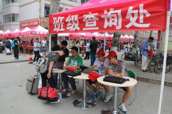 任谁也无法忽视这一排粉色的风景线,一抹甜甜的微笑,一句贴心的问候,一份周全的指南,这些敬爱的学长学姐们为每一位即将融入这所校园的新生献上了最真挚的欢迎与期待。