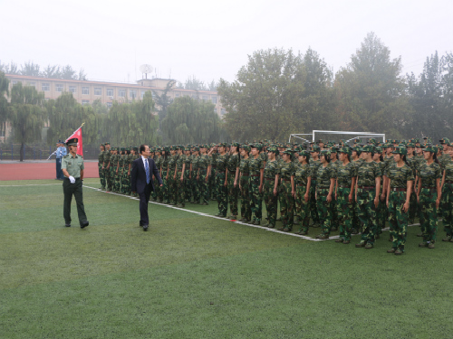 奏国歌结束后,阅兵仪式开始,都光珍对我院的军训方阵进行了检阅,同学们以“为人民服务”等嘹亮的口号回应首长的检阅。