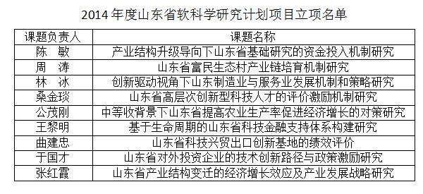近日,山东省软科学办公室和山东省社会科学规划管理办公室相继正式公布了“2014年度山东省软科学研究计划项目立项名单”和“2014年度山东省社科规划项目立项名单”,我院在此两项省级科研项目评审中喜获佳绩,9名教师申报的软科学课题、9名教师申报的社科规划课题获批立项(详细见下表)。