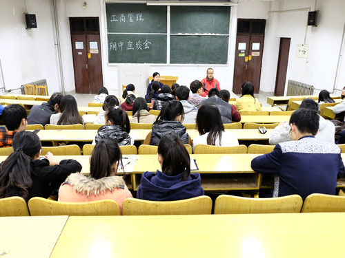 工商管理专业于3号教学楼205教室举行期中教学检查座谈会。工商管理系系副主任王新军、刘晓平及工商管理系学生代表参加了座谈会。在会上,王新军就先前阶段的工作进行了总结。他要求,对于学生学习、生活中出现的问题一定要及时反馈、解决,保证学生正常学习生活。随后,各学生代表就专业方向的分类、考研、专业辅修等问题进行提问。在场老师对所提问题耐心讲解,王新军指出要合理规划未来方向,做到有目标、有方向、有努力,根据个人兴趣举行合理的专业辅修学习,切勿从众。