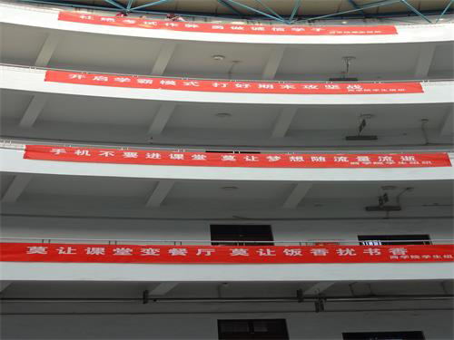 在东校区3号教学楼内,“杜绝考试作弊,勇做诚信学子”“开启学霸模式,打好期末攻坚战”“手机不要进课堂,莫让梦想随流量流逝”“莫让课堂变餐厅,莫让饭香扰书香”等一系列海报和条幅引得来往学生驻足观看。