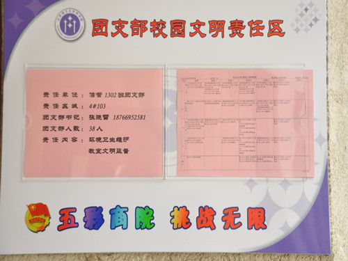 “教室装扮得就像一个温馨的小家”、“教室门口为何会有团支部校园文明责任区的标识牌?”“教学楼的两块仪容镜是做什么的啊?” ......最近,商院学子对校园的这些新变化啧啧称奇。今年5月份,学院紧扣学生实际、认真落实学校的有关要求,以基础文明活动月为契机,强化学生文明意识、营造文明修身氛围。别样的商院文明之花,在新风的沐浴中光彩夺目。