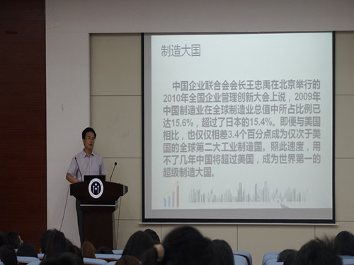 6月11日晚,以“新常态下中国制造业走向——《发现淄博》之感想”为主题的讲座在我院四号教学楼报告厅举行,我院工业工程系博士董会忠担任主讲。