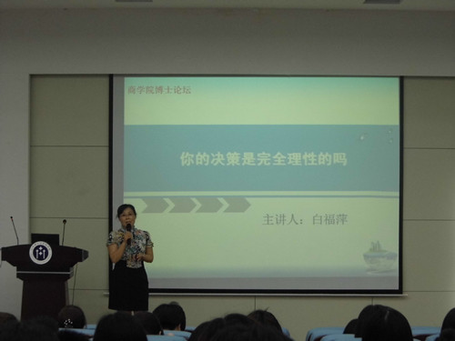 6月12日下午,以“你的决策是完全理性的吗”为主题的讲座在我院四号教学楼学术报告厅举行,我院财务管理系博士白福萍担任主讲。