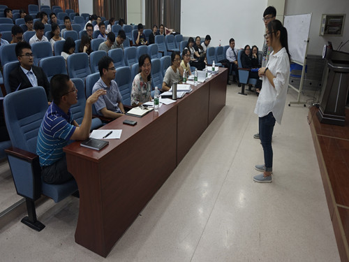 答辩会上,各社会实践团体负责人结合ppt,对自己项目进行讲解,简明生动的展示出自己团体的实践主题。评委老师对各实践项目的选题、策划、可行性、答辩、特色等方面进行点评,并给予他们宝贵的意见。随后,各位老师对社会实践队伍打分。同学们也积极地记录,对自己项目所存在的问题进行了及时修改整理和修改。