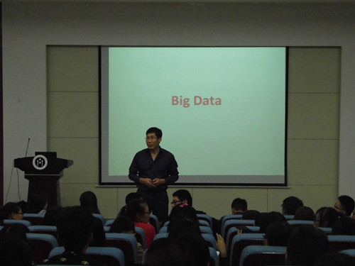 讲座上,张立涛老师以“什么是大数据”的问题引出本场报告的主题,并对“大数据”的时代背景做了简要分析。接着,他向在场同学讲述了六种无所不在的数据以及大数据的六大特征。他从大数据时代的思维变革、商业变革和管理变革等三个方面详细分析了大数据给人类生活所带来的变化。大数据不仅方便了大家的生活,也推动了工作效率的提高。他以“更多、更杂、更好”、“数据化”、“价值”、“角色定位以及风险掌控”来概括其主要特点,并对这些变化做了详细的解释与分析。最后,他表示在正在发生的未来中,大数据仍会继续。讲座在热烈的掌声中结束。