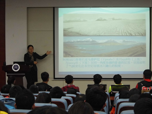 讲座从“气候变化与低碳经济”、“国际减排行动与努力”、“低碳转型的影响因素”、“新常态下低碳转型之路”四方面展开。首先,她以数据形式向大家分析了“地球不能承受之热”,并讲述了气温升高的表现及其危害。随后,她又从“低碳经济的概念”、“低碳经济的实质”等四个方面介绍了低碳经济的内涵。接着,她以联合国气候变化框架公约、哥本哈根协议等会议为例阐述了国际减排会议,又通过英国、美国、德国等国家分析了发达国家减排工作,从中国面临的挑战、中国能源的现状等角度剖析了中国艰苦的减排努力。她借助图表从低碳规制对低碳转型的作用机理、结构优化对城市低碳转型的作用机理等方面解析了低碳转型的影响因素,并为新常态下低碳转型之路的几点建议:构建低碳转型机制、优化能源消费结构、加强产业结构调整。最后,她呼吁大家从日常小事做起,低碳生活,共建绿色家园。讲座在大家的掌声中结束。