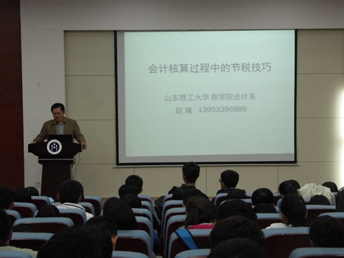 11月5日晚,会计系系主任赵耀于四号楼报告厅进行了一场精彩的学术讲座,该讲座的主题是“会计核算过程中的节税技巧”。