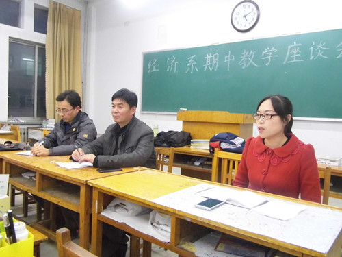 经济专业于3号教学楼205教室举行座谈会。学生代表就学习与生活中存在的问题同老师交流。老师们就同学们提出的专业课选修学分、部分课程难度较大、专业培育计划等问题进行了耐心解答。对于“社团工作”,大一同学困惑较多,老师建议大家依据个人情况参加,保证学习效率,争取一举多得。