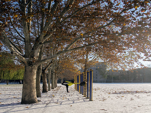 拉腿弯腰,撑出一轮冬日暖阳