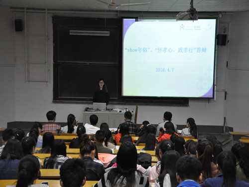 4月7日晚,我院2016年“Show年俗”和“怀孝心,践孝行”答辩会于1号教学楼西二合堂举行。该答辩会由商学院素拓部部长韩笑主持,商学院主席团以及各部长担任评委。