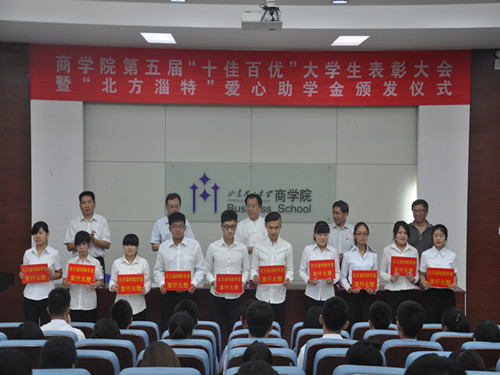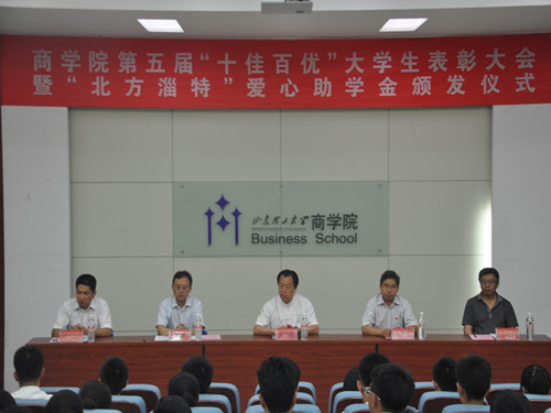 商学院第五届“十佳百优”大学生表彰大会暨“北方淄特”爱心助学金颁发仪式举行