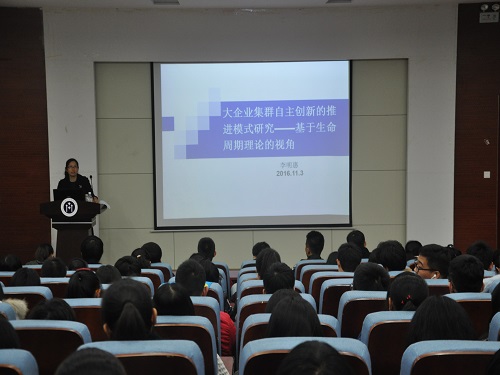 11月3日晚,我院于4号楼报告厅举行一场精彩的学术报告,该报告主题为“大企业集群自主创新的推进模式研究——基于生命周期理论的视角”,此次报告由会计系副教授李明惠老师主讲,部分学生参加。