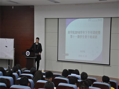 11月10日下午,我院第十一期学生骨干培训会于四号教学楼二楼报告厅召开,该会议由我院2016年国家奖学金获得者主讲,由院学生会副主席杨明康主持,我院各学生组织部分成员与16级部分班委参加培训。