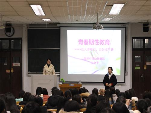 12月8日晚,我院于3号教学楼106教室举行大学生性教育讲座之女生专场。此次讲座由淄博市妇幼保健院妇保科医生王金平主讲,我院学生科辅导员李金香主持。2016级部分学生参加。