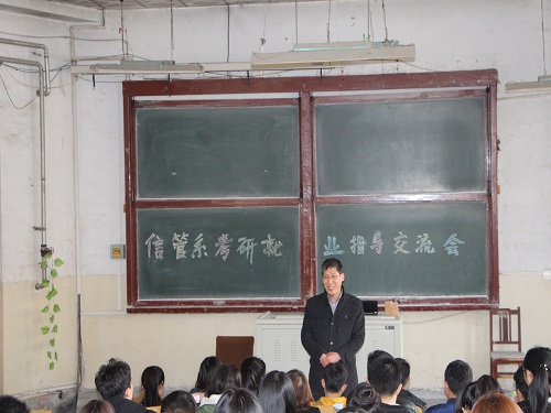3月16日下午,我院于四号教学楼104教室举行信息管理与信息系统专业考研就业指导会。此次会议由院学生科辅导员曹睿主持,我院信管系主任张立涛主讲,信管系14级部分学生参加。