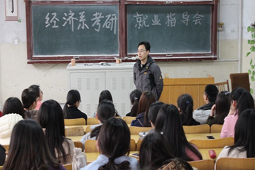 3月23日下午,我院在四号教学楼103教室举行经济系考研就业指导会。此次会议由经济学系老师王金田主讲,院学生科辅导员曹睿主持,14级经济学系部分学生代表参加。