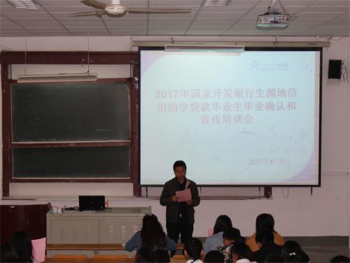 4月6日下午,我院在一号教学楼西一合堂举行毕业生还款确认宣讲会。此次会议由校资助管理中心张生元主讲,院学生科辅导员候倩主持,全部信用贷款毕业生参加。