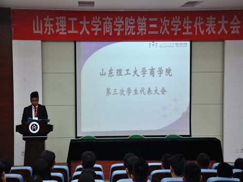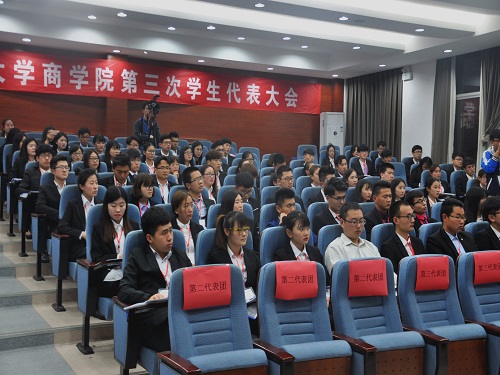 会议伊始,桑军帅宣布会议正式开始,并向大家介绍此次会议的六项议程。会议进行第一项,由学生代表周振做商学院第三次学生代表大会筹备工作的报告,向各位代表汇报此次大会筹备工作的情况。随后,工作人员宣读《关于代表资格审查的报告》,并指出此次学生代表大会按照民主集中制的原则,共选出学生代表115名,具有广泛的代表性和先进性,结构合理,均符合代表选举条件。会议还先后一致通过了大会主席团名单,大会秘书长、副秘书长名单以及大会议程,同时还宣布此次大会的三大议程分别是听取和审议学院第二届学生委员会工作报告,选举商学院第三届学生委员会,发出“学在商院,争做五有大学生”的倡议。最后,由学生代表宋小磊布置第二天大会开幕式的有关注意事项,会议在掌声中结束。