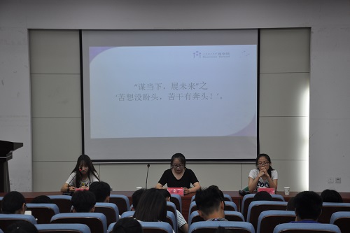 活动伊始,安丽洁针对数学学习做了详细讲解,她提倡“滚动学习”法,即一轮复习的结束意味着二轮复习的开始,不断巩固已学知识,从中提炼知识体系,总结做题方法,她着重说明了备战考研从前期到后期的时间安排,其中包括前期的课本知识回顾、中期的笔记背诵以及后期的真题演练等。随后,郝君就考研应有的学习状态提了几点建议,对于所考专业和学校要有目标和规划,可通过咨询前辈、网站查询等形式充分了解心仪院校的相关录取标准,确定好目标后,重要的就是坚持学习,考研贵在坚持,要将所有时间和精力都用于学习。最后,胡秀梅对考研之路做了总结,她讲到,专业课方面要提前了解难易程度,选择适合自己的专业并提早进入考研状态,充分备考;要有乐观的心态,切忌与研友盲目攀比,把握好自己的节奏,一步一个脚印,扎实稳打,实现目标便无遗憾。