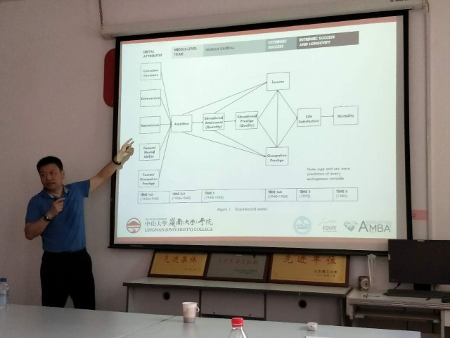 2017年9月15日下午,长江学者青年学者、国家杰青获得者、珠江学者特聘教授、中山大学岭南(大学)学院施俊琦教授为管理学院教师做了“如何做好组织行为学研究”的学术报告。学术报告由管理学院副院长孙秀梅主持,高厚礼书记、程钧谟院长和部分教师参加。