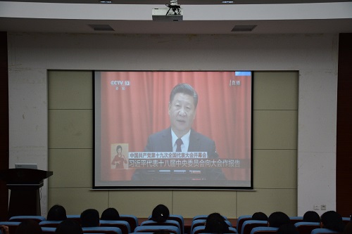 观看十九大开幕式,能够使师生们更深刻地了解党情国情,认识社会的发展状况,更加坚定理想信念、保持党的先进性,进一步激发师生们的使命感和责任意识。观看现场,全体人员认真学习习近平总书记所作的报告。报告内容丰富、思想深刻、振奋人心,全面回顾总结了党的十八大以来的工作及取得的伟大成就,并对未来党和国家的发展进行了新的展望。