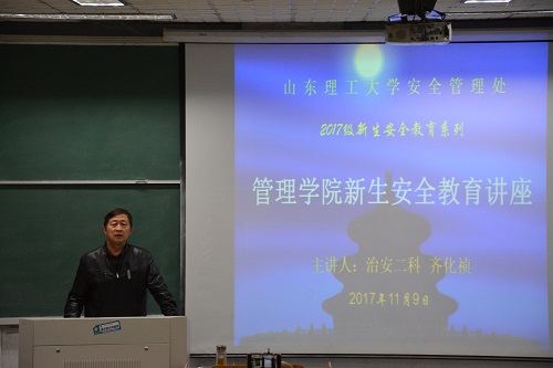 11月9日下午,管理学院于三号教学楼107教室开展“安全教育主题安全月”消防安全知识讲座。安全管理处治安二科科长齐化祯担任主讲人,部分学生代表参加。