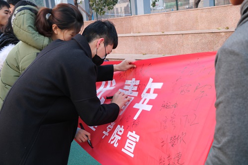 仪式结束后,各学生代表参加国旗下签名活动。此次升旗仪式教育使同学们受到了精神洗礼,激发了爱国热情,更感到了自身的重任。管院学子将继续为梦想拼搏,为祖国贡献自己的力量。(李宜珊 李雪颖 尹福彬)