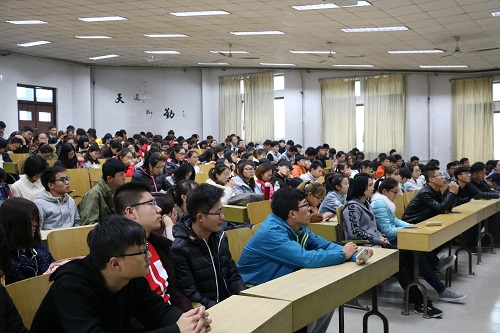 讲座伊始,张敏向同学们讲解红十字运动文化理念的传播,并介绍红十字会的历史和世界的各种组织与活动。他指出,红十字会运动是以弘扬人道主义为宗旨,以改善最易受损害群众境况为目标,以人道、公正、中立、独立、志愿服务、统一、普遍七项原则为行为准则,并在和平时期负责救灾备灾、卫生救护、社区服务等工作。紧接着,他对现场救护的知识与技能特别是心脏复苏术进行讲解。他提到,病人救治时间紧迫,心脏复苏有现场评估,救治动作共分为判断意识、呼吸、心跳,心脏按压,开放气道和人工呼吸五个步骤,处理时一定要到位。同时在现场进行了模拟心脏复苏教学,并请学生上台模仿心脏复苏术。接下来,毕立祥对校医院的基本职能做了简单介绍。他指出,校医院的职能是满足学生基本需求、进行健康体检、医保等日常问题,同时对艾滋病的传播和预防措施进行讲解,展示艾滋病的危险,并提醒同学们洁身自好,早发现早治疗有效远离病源。