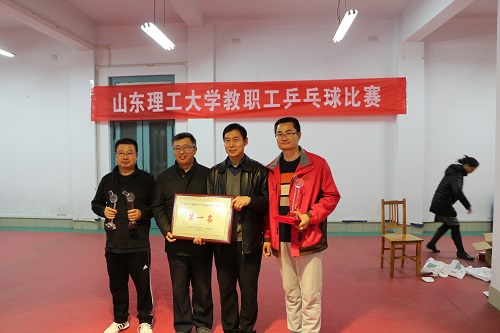 在11月30日举行的山东理工大学2017年教职工乒乓球比赛团体赛决赛中,由赵广忠、杨化峰、程钧谟组成的管理学院队以3:2战胜机关联队获得冠军。在之前结束的比赛中,赵广忠获男子单打冠军,赵广忠、杨化峰获男子双打冠军,王晓丹、杨化峰获混双第六名。