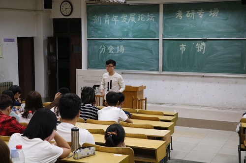 4月19日晚,管理学院于三号教学楼209、210教室举行新青年发展论坛之第二期考研专场,专场一为信息管理与信息系统专业、专场二为市场营销专业。