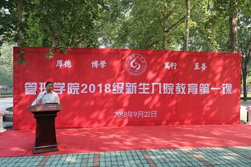 9月22日上午,管理学院在中心花园开展“2018级新生入院教育第一课”活动,由学院党总支书记高厚礼主讲,学院全体2018级新生参加。
