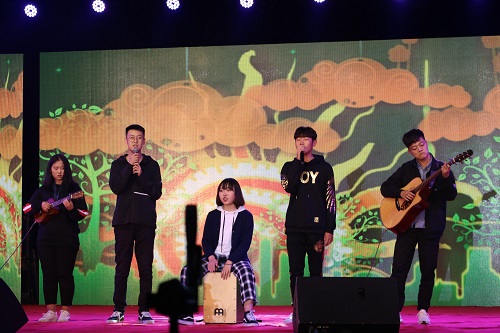 开场舞过后的合唱表演《等你下课》、《离人愁》与独唱表演《红玫瑰》、《遗憾》,表达对青春年华的回忆,引发观众共鸣。独唱演出与古筝共同带来的《雪落下的声音》,声声入耳、绵绵诉情,以音乐洗净同学们心灵的尘埃。歌曲《Price tag》、吉他弹唱《莉莉安》、舞蹈《绝地求生》与轮滑表演等节目让同学们在悠扬的歌声中感受音乐的魅力,用音乐点燃青春的花火。本次晚会的精彩看点是21位家长的电话寄语以及一位家长的书信,他们代表全体新生家长表达了对孩子独立自主、健康成长的期望。歌舞表演后,一首《仰望星空》将节目拉至尾声,他们用嘹亮的歌声向同学们传达,梦想并不遥远。