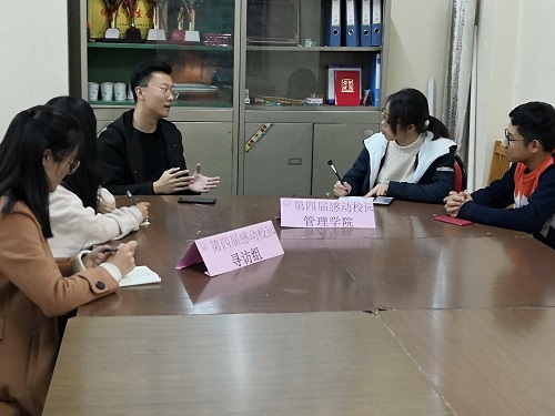 10月31日晚,管理学院于三号教学楼411教室进行“第四届感动校园人物”寻访活动,此次活动由“有个活零工经济平台”创始人王晨铭主讲,“第四届感动校园人物”寻访组及学院新闻中心成员参加。