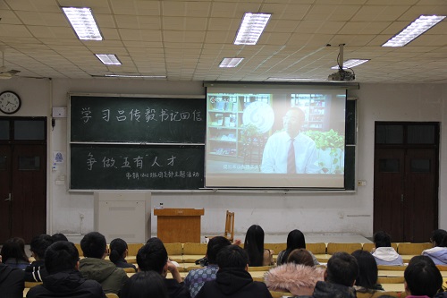 随后,各班同学认真学习吕书记回信内容。吕书记在信中指出,同学们在日常生活中要刻苦学习,掌握专门知识,把学习作为主要任务,并用积极向上的心态投入学习、工作和生活。他希望同学们经过大学期间的奋斗磨砺,都能成为“五有”人才,都能成长为更好的“自己”。紧接着,各班以主题演讲、讨论、沙龙等形式,引导同学们就专业、个人兴趣爱好、责任担当等方面提出自己对吕传毅书记回信的看法。
