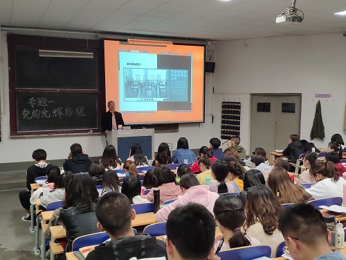 紧接着,他对中国共产党“立业”的历史做了详细阐释。他介绍到,党的“立业”历史是指从1949年新中国成立到1976年文革结束的历史。他表示,党的发展道路虽然曲折,但党并没有被摧毁,社会主义制度的根基依然还保留着。接下来,他从“兴业”方面的历史向同学们提出自己的看法。他表示,十一届三中全会的召开为社会主义事业的发展开辟了新篇章,十二大、十三大、九二共识等历史事件标志着党从改革开放到向全面建设小康目标发展进程中取得的伟大成就。最后,他带领积极分子跟随邓小平的脚步踏上改革开放的新征程,感受改革开放带来的巨大变迁。他号召积极分子牢记党史,坚定自身理想信念,勇担民族复兴大任。