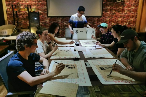 学校国际合作与交流处、国际教育学院为爱丁堡罗大学(以下简称爱大)师生安排了丰富多彩的语言文化学习体验课程。爱丁堡罗大学师生参加了茶艺、书法以及剪纸中国文化体验课程。在老师们的悉心指导下,首次接触剪纸、书法的爱大师生创作出了精美的剪纸、书法作品。生动有趣的中国文化课让美国师生体验了中国传统文化的魅力,对中国传统文化产生了浓厚的兴趣。