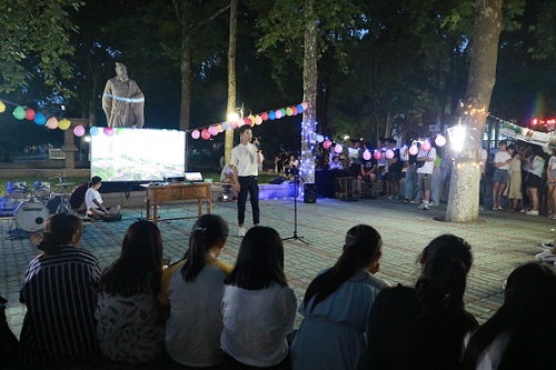 6月13日晚,管理学院在东校区中心花园举行“仲夏夜之约”2015级毕业生毕业晚会,学院部分学生参加。
