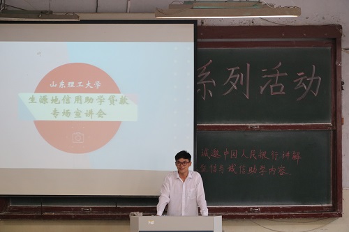 6月13日下午,管理学院于东校区四号教学楼104教室举办生源地信用助学贷款专题宣讲会。此次活动由齐鲁工业大学资助中心宣讲团韩军磊主讲,学院学生科辅导员张仕杰主持,学院部分学生参加。