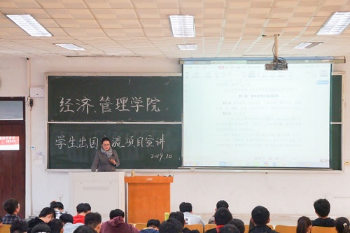 为帮助学生了解出国交流项目的有关信息,拓展学生视野,管理学院与经济学院于10月31日在3号教学楼310教室举行出国交流项目宣讲活动。此次活动由国际合作与交流处学生交流科牟善芹老师主讲,管理学院与经济学院部分学生参加。